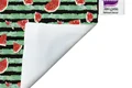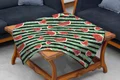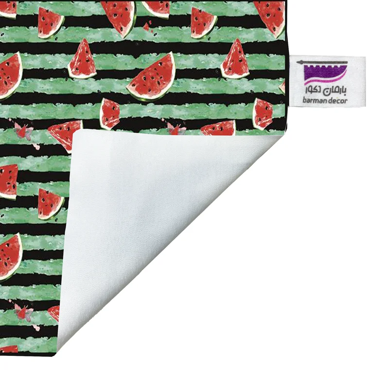 یک عدد رومیزی سایز 100x100 سانتی متر مناسب برای میز جلومبلی و میز غذاخوری چهار و شش نفره می باشد. جنس رویه رومیزی مخمل کوبیده شده چاپی (نرم و لطیف) و بدون ریزش پرز است و جنس پشت رومیزی آستری سفید است.رومیزی ها قابل شستشو با دست و ماشین لباسشویی (دمای 30 درجه) با پودر کم آنزیم می باشد. نوع چاپ روی مخمل، سابلیمیشن (چاپ حرارتی) با جوهر ژاپنی با مقاومت بالا می باشد، همچنین دوخت ظریف و تمیز به دو روش چرخ دوز و پس دوز انجام می شود.