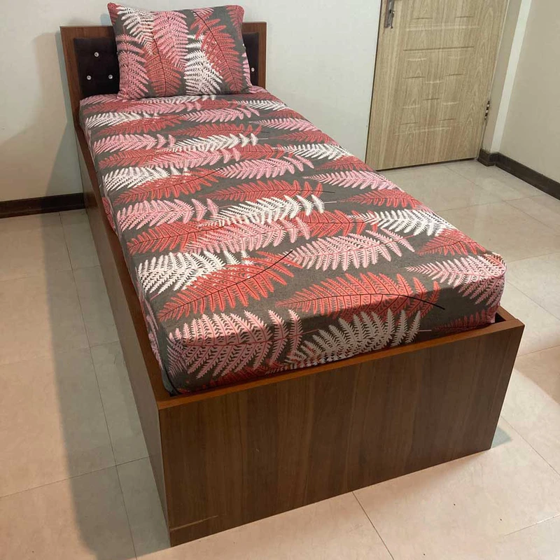 این سرویس یک نفره دو تکه کاور ملحفه ای کشدار به طول 2 متر و عرض 90 سانت می باشد، از جنس پارچه مرغوب مخمل تهیه شده است که دارای دوام و استحکام بالایی بوده، رنگ و ابعاد آن پس از شستشو تغییر نمی کند. دوخت تمیز و محکمی داشته و ارتفاع کاور ملحفه 25 سانتیمتر می باشد. چهارگوشه کاور ملحفه (90×2 سانت) کشدوز شده است تا باعث شود کاور کاملا روی خوشخواب ثابت بماند.بهمراه یک عدد روبالشی به سایز 50x70 x