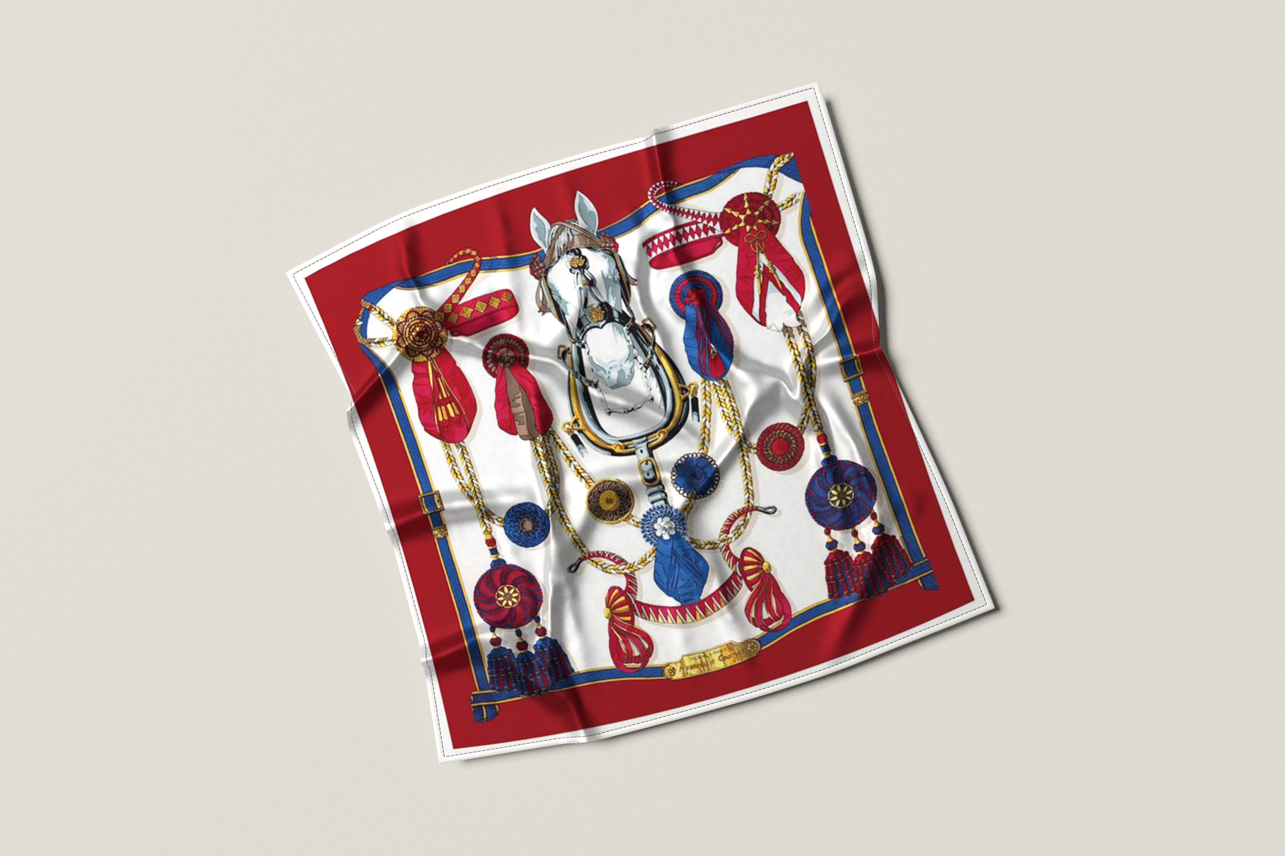 روسری ابریشم توییل طرح هرمس کلاسیک کد 1123
